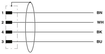 Силовой кабель, 4-полюсн., PUR без галогенов, черный RAL 9005, экранирован. (Advanced Shielding Technology), Штекеры прямое M12, Т-кодирование, к свободный конец, длина кабеля: 10 м