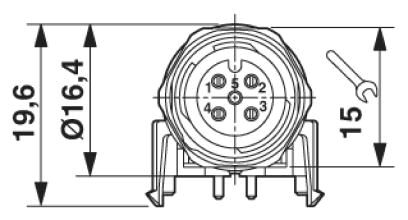 Встраиваемый разъем для датчика / исполнительного устройства, розетка, 4-полюсный, M12-SPEEDCON, с механическим ключом А-типа, монтаж с задней части стенки / винтовой монтаж с резьбой М12, защита от скручивания, с угловыми выводами под пайку