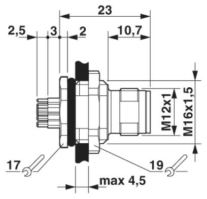 Встраиваемый соединитель для датчика/исп. устр-ва, штекер, 17-контактн., M12-SPEEDCON, экранированный, с мех. ключом А, монтаж на задней панели / резьбовое крепление M16, с прямыми выводами под пайку