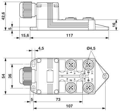 Корпус коробки датчика и исполнительного элемента, применение: Стандартн., тип подключения: Гнездовой разъем M12-SPEEDCON Пластик, количество гнезд: 4, полюсов: 4, механические ключи: A - стандарт, гнездо для платы: oдин ряд, индикатор состояния: есть, p-n-p; годключение магистрального кабеля: вставные винтовые клеммы, экранировка: нет