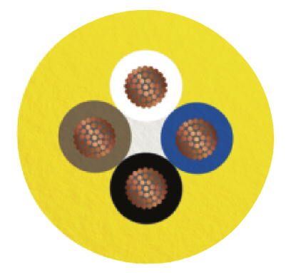 Бухта кабеля, ПВХ, желтый цвет, 4-жильный кабель, цвета жил: коричневый/белый/синий/черный, длина кабеля: 100 м
