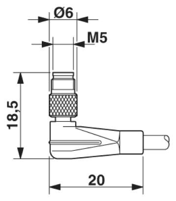 Кабель для датчика / исполнительного элемента, 3-полюсн., PUR, черный RAL 9005, Штекеры угловой M5, А-кодирование, к свободный конец, длина кабеля: 5 м