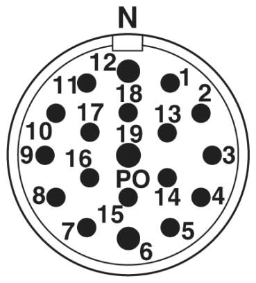Приборный соединитель, задняя часть стенки, прямой, Байонетный зажим, M23, Полюсов: 16+3, тип контактов: Штифт, Подключение пайкой, Радиальное уплотнительное кольцо, Центральное крепление M20 x 1,5