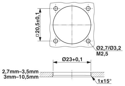Приборный соединитель, задняя часть стенки, прямой, экранирован.: есть, Винтовой зажим, M23, Полюсов: 6+3, тип контактов: Штифт, Выводы под пайку, Радиальное уплотнительное кольцо, 4xM2,5, Толщина стенок, мин.: 2,7 мм, Толщина стенок, макс.: 3,5 мм