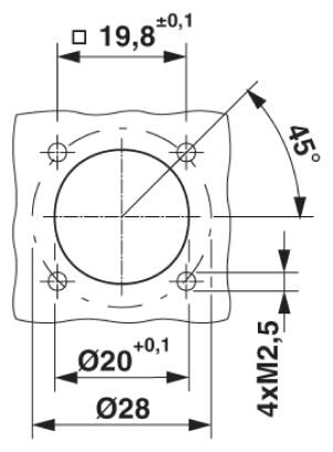Аппаратн. соединитель, передняя стенка, угловой, поворотный, для стандартной блокировки и SPEEDCON, M17, полюсов: 17, тип контактов: Розетка, Обжим, Аксиальное уплотнительное кольцо, 4x Ø2,7, экранирован.: есть, размер фланца: 25,75 мм x 25,75 мм
