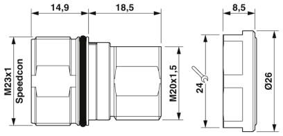 Приборный соединитель, передняя часть стенки, прямой, экранирован.: есть, для стандартной блокировки и SPEEDCON, M23, Полюсов: 16+3, тип контактов: Штифт, Подключение пайкой, Осевое уплотнение, Центральное крепление M20 x 1,5, возможность позиционирования при помощи контргайки