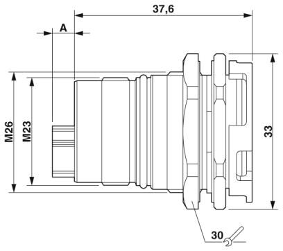 Приборный соединитель, задняя часть стенки, прямой, экранирован.: есть, для стандартной блокировки и SPEEDCON, M23, Полюсов: 4+4+4+PE / 3+N+PE, тип контактов: Штифт, Обжим, Плоское уплотнение, Центральное крепление M26 x 1, Толщина стенок, мин.: 1,5 мм, Толщина стенок, макс.: 5 мм