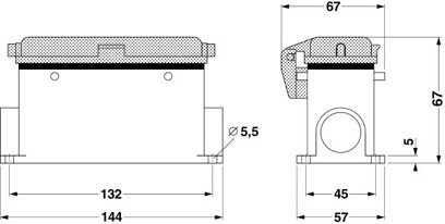 Приборный корпус, крепление с помощью двух защелок, высота 67 мм, с патрубками, 2x Pg21, с защитной крышкой
