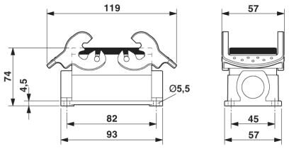 Распределитель для датчиков в приборном корпусе HEAVYCON B10, с двумя защелками, высота 74 мм, со вставкой HC-B10-EBUC, контактами CK2,5-ED-0,5 ST AG и 8 разъемами SACC-E-M12MS-5CON-PG9/05, вставленными в боковую стенку