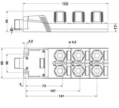 Коробка датчика и исполнительного элемента, применение: Стандартн., тип подключения: QUICKON, 0,34 мм² ... 0,75 мм², количество гнезд: 6, полюсов: 4, гнездо для платы: oдин ряд, индикатор состояния: есть, NPN; годключение магистрального кабеля: Пружинные зажимы 180°, экранировка: нет