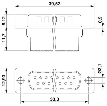 Держатель контактов D-SUB, размер 2, для установки 15 контактов для сигнальных цепей, штыревые контакты, для контактов под обжим, прямые, для крепления предусмотрены отверстия 3 мм, для монтажных рам и сальниковых корпусов VS-15-...