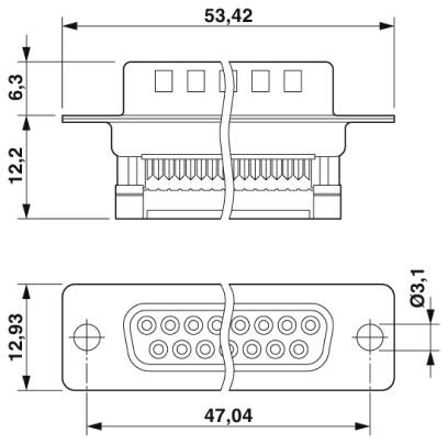 Контактная вставка D-SUB, размер 3, с 25 контактами для сигнальных цепей, гнездовые контакты, разъем для плоского кабеля, угловой, для крепления предусмотрены отверстия 3 мм, для монтажных рам VS-25-...
