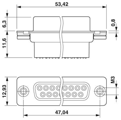 Держатель контактов D-SUB, размер 3, для установки 25 контактов для сигнальных цепей, гнездовые контакты, для контактов под обжим, прямые, крепежные отверстия с резьбой M3, для монтажных рам VS-25-...