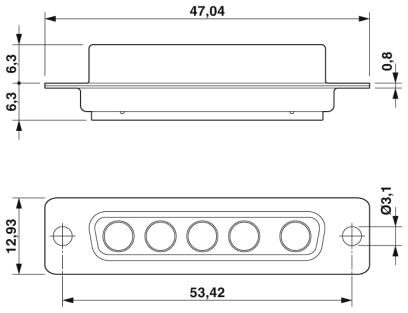 Держатель контактов D-SUB, размер 3, для установки 5 комбинированных контактов, гнездовые контакты, прямые, для крепления предусмотрены отверстия 3 мм, для монтажных рам и сальниковых корпусов VS-25-...