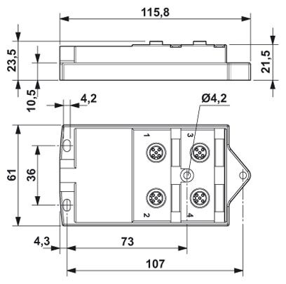 Коробка датчика и исполнительного элемента, применение: Стандартн., тип подключения: Розетка M12 металл, количество гнезд: 4, полюсов: 5, механические ключи: A - стандарт, гнездо для платы: Двойной, индикатор состояния: Нет, Универсальный; годключение магистрального кабеля: Жесткое подключение 180°, PUR/PVC, длина кабеля: 10 м, экранировка: есть