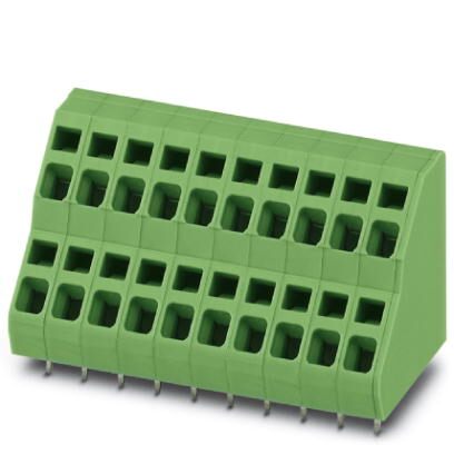 Клеммы для печатной платы, номинальный ток: 17,5 A, номинальное напряжение: 400 В, размер шага: 5,08 мм, полюсов: 28, тип подключения: Пружинный зажим, монтаж: Пайка волной припоя, направление подключения, проводник/печатная плата: 45 °, цвет: зеленый