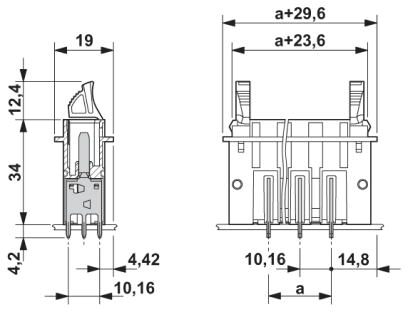 Компоненты для проходного монтажа, номинальный ток: 76 A, расчетное напряжение (III/2): 1000 В, полюсов: 9, размер шага: 10,16 мм, цвет: зеленый, поверхность контакта: Серебро, монтаж: Пайка волной припоя