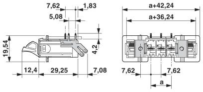 Компоненты для проходного монтажа, номинальный ток: 41 A, расчетное напряжение (III/2): 630 В, полюсов: 6, размер шага: 7,62 мм, цвет: зеленый, поверхность контакта: олово, монтаж: Пайка волной припоя