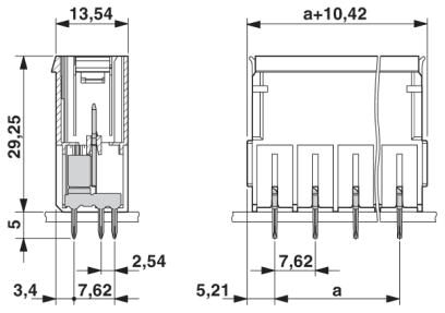 Корпусная часть для печатных плат, номинальный ток: 41 A, расчетное напряжение (III/2): 630 В, полюсов: 10, размер шага: 7,62 мм, цвет: зеленый, поверхность контакта: олово, монтаж: Пайка волной припоя