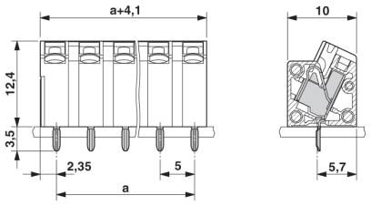 Клеммы для печатной платы, номинальный ток: 9 A, номинальное напряжение: 320 В, размер шага: 5 мм, полюсов: 12, тип подключения: Пружинные зажимы Push-in, монтаж: Пайка волной припоя, направление подключения, проводник/печатная плата: 65 °, цвет: зеленый
