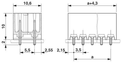 Корпусная часть для печатных плат, номинальный ток: 8 A, расчетное напряжение (III/2): 160 В, полюсов: 17, размер шага: 3,5 мм, цвет: черный, поверхность контакта: олово, монтаж: THR пайка