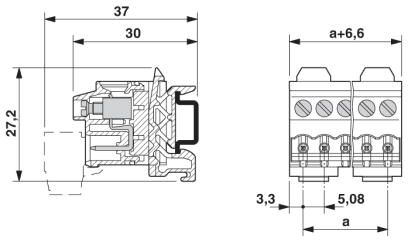 Штекер для установки на монтажную рейку, номинальный ток: 12 A, расчетное напряжение (III/2): 320 В, полюсов: 5, размер шага: 5,08 мм, тип подключения: Винтовой зажим с натяжной гильзой, цвет: зеленый, поверхность контакта: олово, монтаж: Монтажная рейка