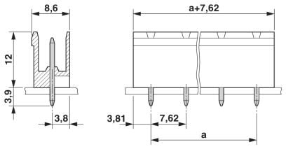 Корпусная часть для печатных плат, номинальный ток: 16 A, расчетное напряжение (III/2): 630 В, полюсов: 12, размер шага: 7,62 мм, цвет: зеленый, поверхность контакта: олово, монтаж: Пайка волной припоя