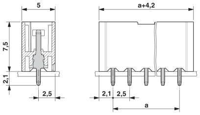 Корпусная часть для печатных плат, номинальный ток: 6 A, расчетное напряжение (III/2): 160 В, полюсов: 2, размер шага: 2,5 мм, цвет: белый, поверхность контакта: олово, монтаж: THR пайка