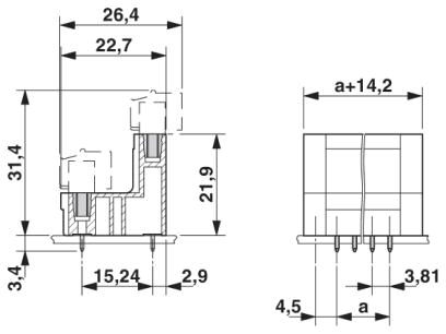 Корпусная часть для печатных плат, номинальный ток: 8 A, расчетное напряжение (III/2): 160 В, полюсов: 14, размер шага: 3,81 мм, цвет: зеленый, поверхность контакта: олово, монтаж: Пайка волной припоя, Вместе со штекерными разъемами MCV используются штекеры MCVW или MCVR.