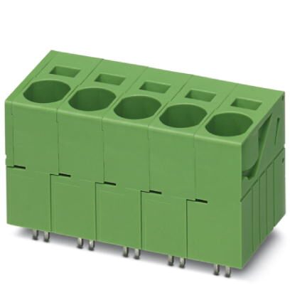 Клеммы для печатной платы, номинальный ток: 125 A, номинальное напряжение: 1000 В, размер шага: 15 мм, полюсов: 1, тип подключения: Пружинные зажимы Push-in, монтаж: Пайка волной припоя, направление подключения, проводник/печатная плата: 90 °, цвет: зеленый