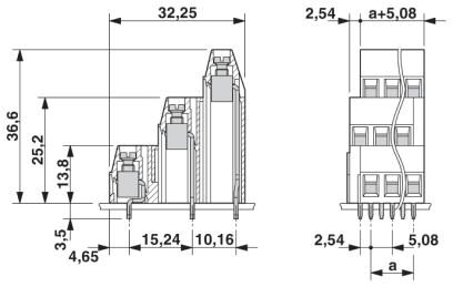 Клеммы для печатной платы, размер шага: 5,08 мм, полюсов: 2, цвет: желто-зеленый. Возможна установка в ряд модулей с различным количеством полюсов (контактов)!