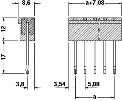 Корпусная часть для печатных плат, номинальный ток: 12 A, расчетное напряжение (III/2): 320 В, полюсов: 8, размер шага: 5,08 мм, цвет: зеленый, поверхность контакта: олово, монтаж: Монтажная рейка