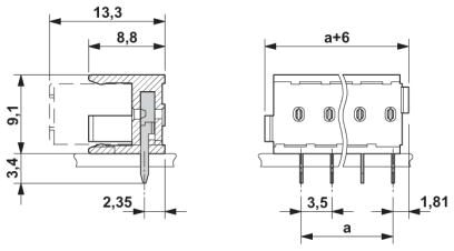Корпусная часть для печатных плат, номинальный ток: 3 A, расчетное напряжение (III/2): 250 В, полюсов: 7, размер шага: 3,5 мм, цвет: черный, поверхность контакта: олово, монтаж: THR пайка, Ответная часть разъема, защищенная от прикосновений к контактам, для установки клемм для печатного монтажа FK-MPT 0,5.