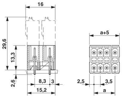 Корпусная часть для печатных плат, номинальный ток: 8 A, расчетное напряжение (III/2): 160 В, полюсов: 20, размер шага: 3,5 мм, цвет: черный, поверхность контакта: олово, монтаж: THR пайка, Длина выводов составляет 26 мм. Информация для пользователя и рекомендации по проектированию процесса технологии сквозного печатного монтажа находится на сайте: "Загрузка"