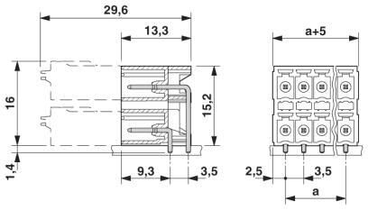 Корпусная часть для печатных плат, номинальный ток: 8 A, расчетное напряжение (III/2): 160 В, полюсов: 2, размер шага: 3,5 мм, цвет: черный, поверхность контакта: олово, монтаж: THR пайка, Длина выводов составляет 1,4 мм. Информация для пользователя и рекомендации по проектированию процесса технологии сквозного печатного монтажа находится на сайте: "Загрузка"