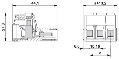 Разъемы для печатной платы, номинальный ток: 76 A, расчетное напряжение (III/2): 1000 В, полюсов: 8, размер шага: 10,16 мм, тип подключения: Винтовой зажим с натяжной гильзой, цвет: зеленый, поверхность контакта: Серебро