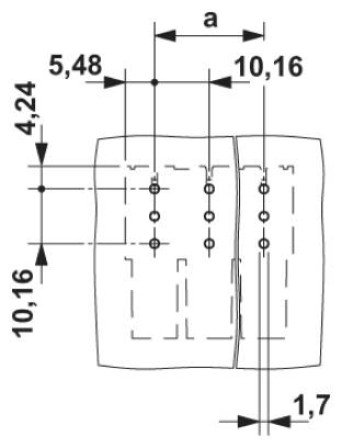 Корпусная часть для печатных плат, номинальный ток: 76 A, расчетное напряжение (III/2): 1000 В, полюсов: 7, размер шага: 10,16 мм, цвет: зеленый, поверхность контакта: Серебро, монтаж: Пайка волной припоя, Направление установки параллельно печатной плате; вилочная часть устанавливается с переворотом под углом 180°.
