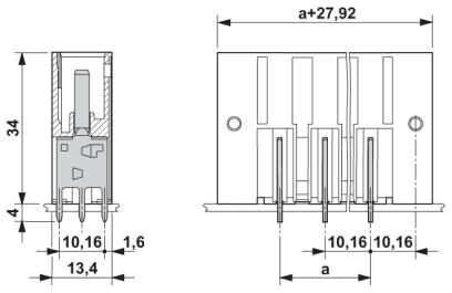 Корпусная часть для печатных плат, номинальный ток: 76 A, расчетное напряжение (III/2): 1000 В, полюсов: 5, размер шага: 10,16 мм, цвет: зеленый, поверхность контакта: Серебро, монтаж: Пайка волной припоя