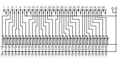 32-канальный модуль со светодиодным индикатором и разъемом для 2 проводников; общий отрицательный потенциал (для выходной платы устройства управления Delta V)