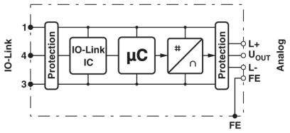 Аналоговый преобразователь Axioline E-IO-Link для подключения аналогового датчика, 0 В ... 10 В, разъемы для быстрого подключения M12, прямое исполнение