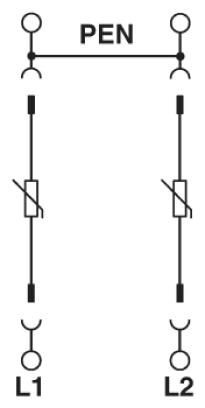 Двухполюсный разрядник для защиты от имп. перенапр., уст. на DIN-рейку, для схемы 2+0, контроль перегрева / динамич. контроль, визуальный индикатор неиспр.,