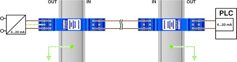 Основной элемент для защитного штекера РТ со схемой защиты для двух 2-проводных сигнальных цепей EEx ia без потенциала земли. Устанавливаются на NS 35/7,5 и NS 35/15, ширина корпуса: 17,5 мм