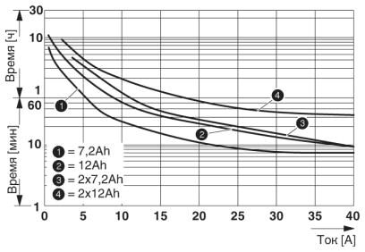 Источники бесперебойного питания 24 В / 40 A. В разделе загрузки приведены таблицы подбора с указанием токов нагрузки, продолжительности автономной работы и зарядки.