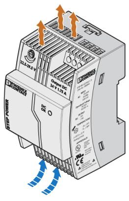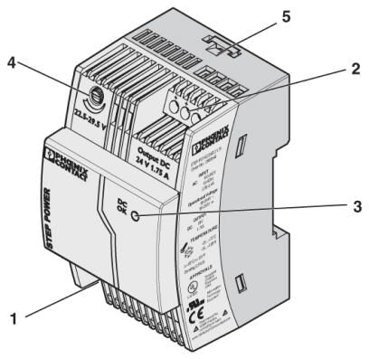 Источник питания STEP POWER с регулированием в первичной цепи, для установки на несущую рейку, вход: 1-фазный, выход: 24 В DC / 1,75 А