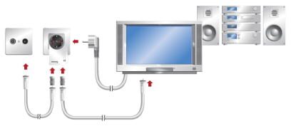 Промежуточный штекерный модуль с гнездом, для защиты от импульсных перенапряжений сети питания и сигнальных входов антенн радио- и телевизионных приемников (кабель, наземная антенна, оборудование спутникового телевидения SAT). Кабель прилагается.