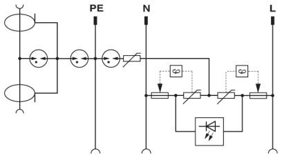 | Номинальный импульсный ток утечки In (8/20) мкс | 3 кA (> 5x) |