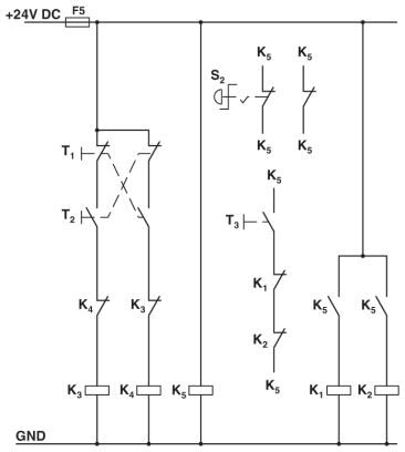 Гибридный пускатель для реверсирования 3-фазных электродвигателей до 550 В перем. тока, входной пост. ток 24 В, выходной ток 2,4 A, аварийный останов.