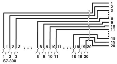 VIP-Power Cabling, универсальный фронтальный адаптер для подключения любых 20-контактных модулей ввода-вывода SIMATIC S7-300, при помощи 20 отдельных скрученных в кабель жил, без оконцовки (подключение к шине при помощи, например, 20 клемм), длина кабеля: 6 м