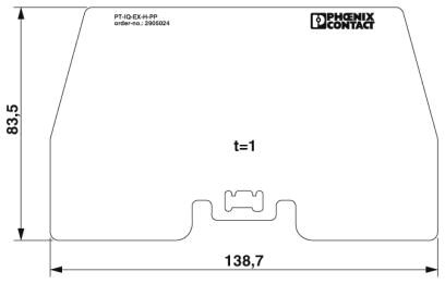 Разделительная пластина для несущих реек NS-35/7,5 в изолированном исполнении (DIN-рейка изолирована при помощи опорной стойки «AB/NS») для обеспечения расстояния до нити накала 50 мм между контролером и УЗИП в системах PT-IQ-EX.