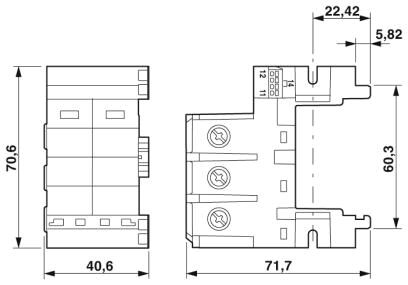 Указание | Для защищенного от прикосновения монтажа в корпусе. В приложениях с UC > 500 В необходимо предусмотреть боковые зазоры и зазоры со стороны ввода проводников между токоведущими частями, а также между токоведущими и заземленными частями, не менее 5 мм. |